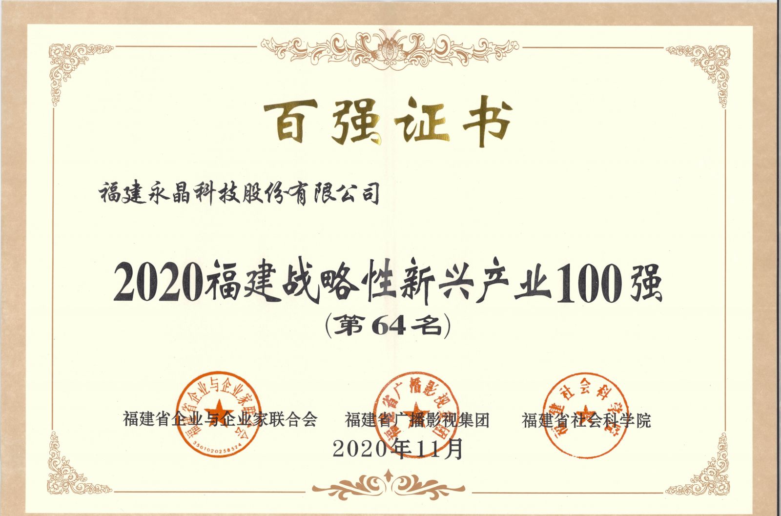 永晶科技榮獲“2020福建戰略性新興產業領軍企業100強”